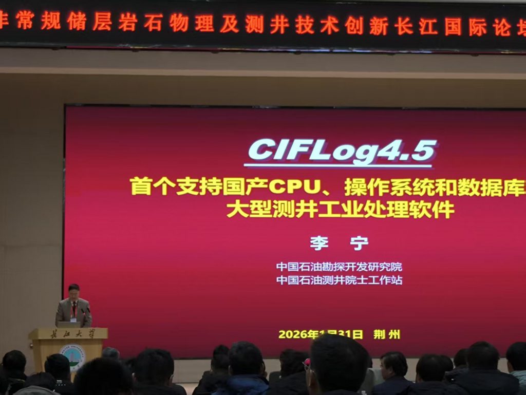 1月31日上午,论坛开幕式在长江大学荆州校区隆重举行。上午8点整,长江大学校领导发表致辞,对各位嘉宾、代表表示最热烈的欢迎。开幕式后,中国石油集团测井有限公司首席技术专家、中国科学院李宁院士受邀作大会首个特邀报告,题为《CIFLog-首个支持国产CPU、操作系统和数据库的大型测井工业处理软件》。李宁院士回顾了CIFLog测井软件系统的研发历程、核心架构与技术突破,重点阐述了其作为我国首套全面支持国产化软硬件平台的大型专业软件,在打破国外技术垄断、保障国家能源信息安全方面所取得的里程碑式成就。