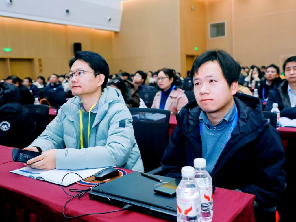 上午报告结束后,进入茶歇交流环节。与会代表们抓住宝贵时机进行深入探讨。其中,张宫老师与李宁院士围绕报告内容及相关技术问题进行了亲切而热烈的交流。此外,实验室团队成员也荣幸地与李宁院士进行了合影留念。
